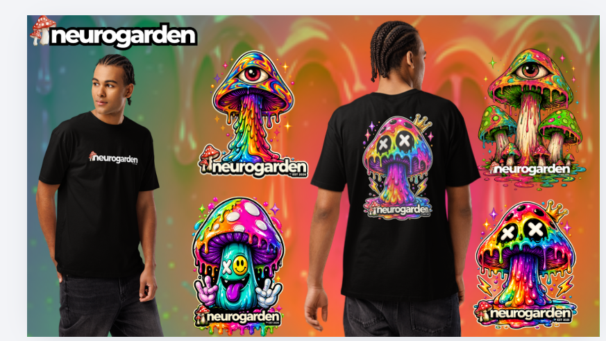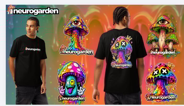Neurogarden is a psychedelic streetwear brand focused on growth, transformation, and self-discovery. Our DRIP 001 collection features bold graphic tees inspired by mushrooms, neural pathways, and the unseen process of becoming.